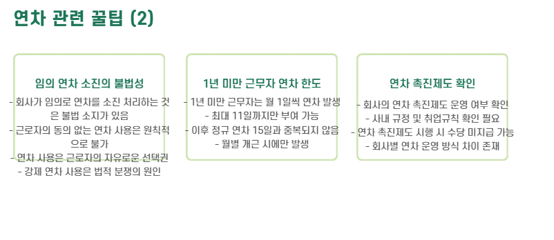 - 회사가 임의로 연차 소진 처리하는 것은 불법 소지 있음
