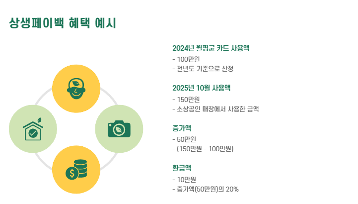2025년 10월에 150만 원을 썼다면 → 50만 원 증가 → 10만 원 환급!