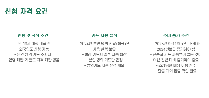 - 지급 시기: 매달 15일 (9~11월 소비 기준 → 익월 15일 지급)