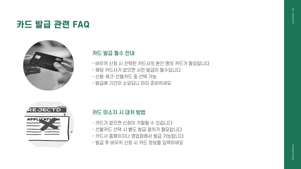 - 선불카드를 선택한 경우, 별도 발급 신청 필요.