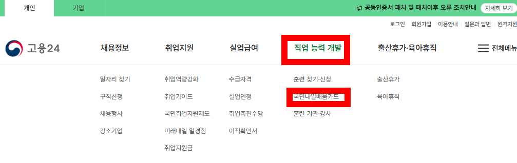 - 고용노동부 직업훈련포털 고용24 통해 신청 가능