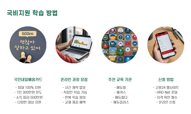 국민내일배움카드를 활용하면 최대 100% 국비지원으로 강의를 들을 수 있습니다.