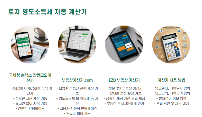 정확한 양도소득세 계산을 위해 다음의 온라인 계산기를 활용하면 편리합니다.