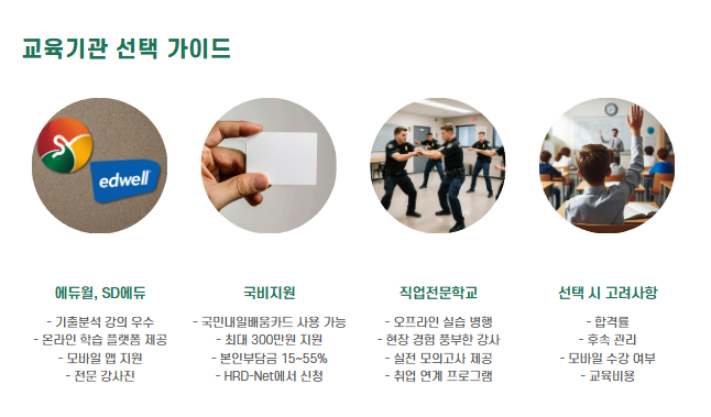 경비지도사 시험을 준비하는 수험생들이 실제로 많이 이용하며, 학습 효율이 높은 교육기관 3곳을 추천드립니다.