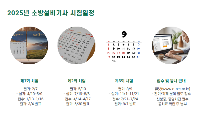 2025년 소방설비기사 시험은 총 3회 실시됩니다. 각 회차별 일정은 다음과 같습니다.
