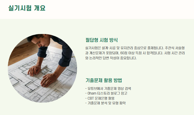 - 설계·시공 및 유지관리 중심의 문제 출제