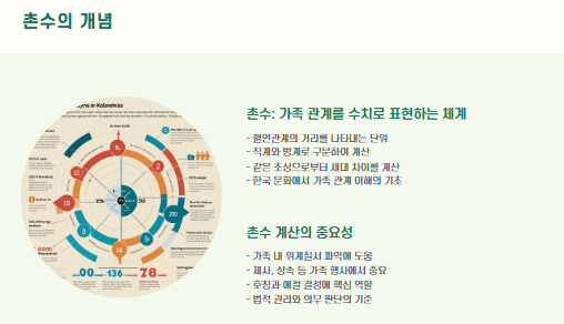 - 촌수는 상대와의 거리를 계산해 나와의 관계를 수치로 표현한 개념입니다.