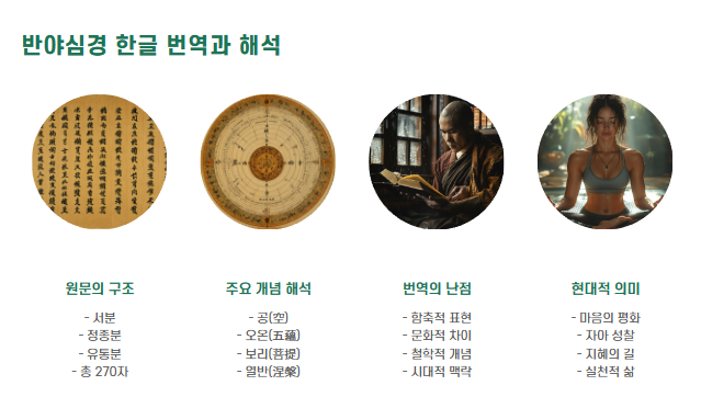 - 특징: 약 260자로 구성된 가장 짧은 불경이지만, 불교 사상의 핵심 요약본