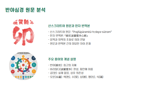 “반야심경은 공(空)의 지혜로 괴로움과 집착을 버리고 열반에 이르는 길을 설한 핵심 경전입니다.”