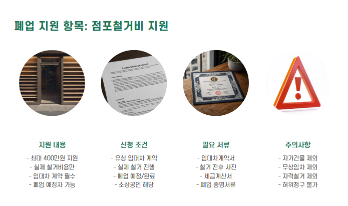✅ 점포철거비 지원 (최대 400만 원)