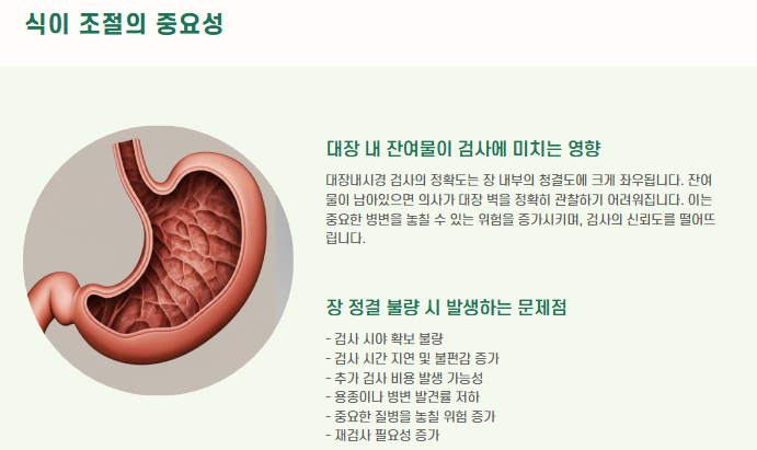 특히 검사 전날 어떤 음식을 먹느냐에 따라 장 정결 상태가 결정되며, 검사 결과에도 영향을 줍니다.