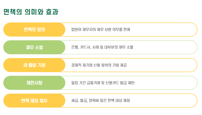 - 도박, 사기, 고의적인 빚은 면책이 어렵습니다.