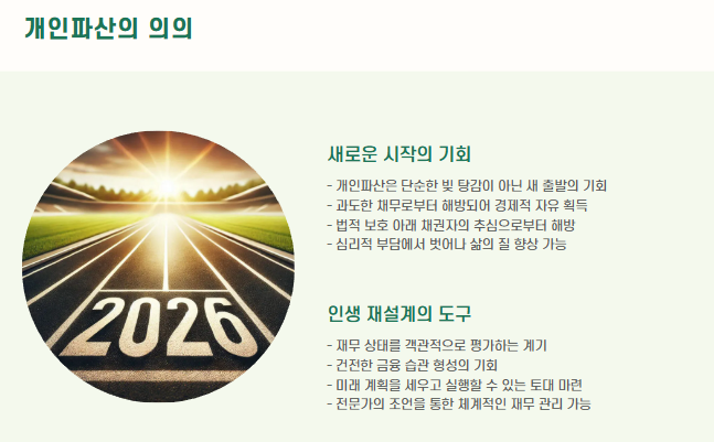 개인파산은 단순히 빚을 없애는 수단이 아니라, 인생을 다시 설계할 수 있는 제도입니다.