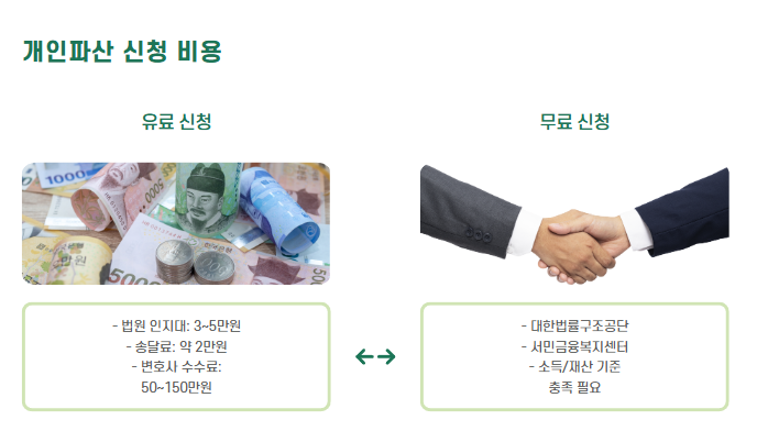 개인파산은 법원에 신청해야 하고, 다양한 서류를 준비해야 하며, 경우에 따라 변호사나 법무사 비용도 발생합니다.
