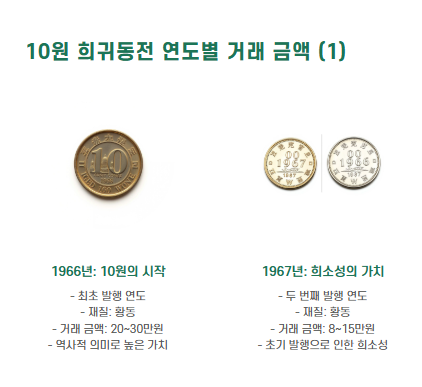 특정 연도에 발행된 10원짜리 동전은 희소성과 역사적 가치로 인해 수집가들 사이에서 높은 가격에 거래되고 있습니다.