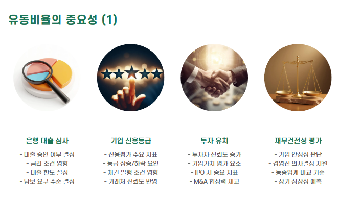 - 금융기관은 대출 심사 시 기업의 단기 상환 능력을 가장 먼저 봅니다.
