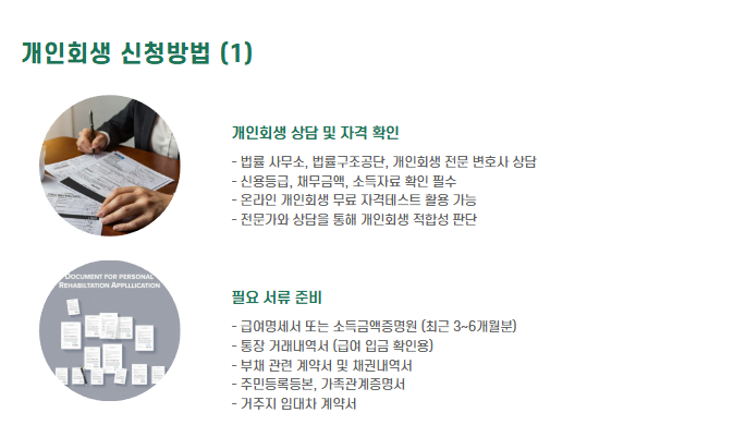 - 법률 사무소, 법률구조공단, 개인회생 전문 변호사를 통해 자격 검토 및 상담 진행