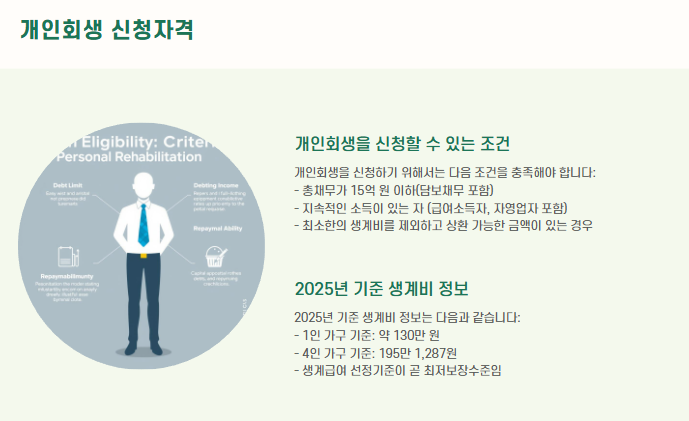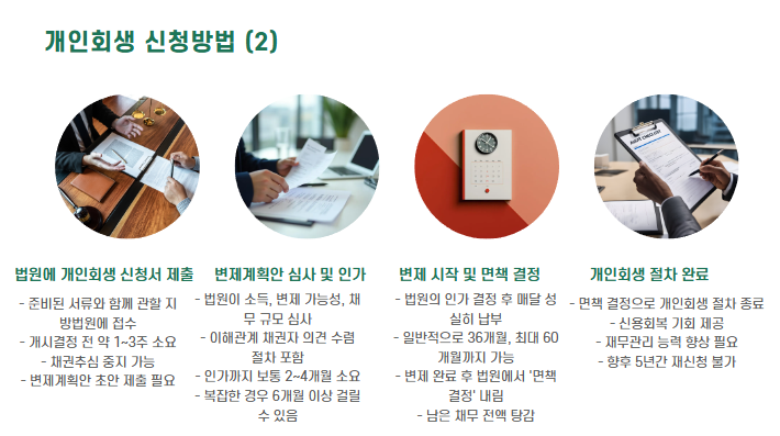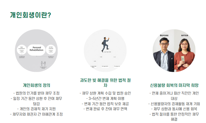 - 3~5년 동안 일정 금액만 성실하게 납부하면 나머지 채무는 전액 면책