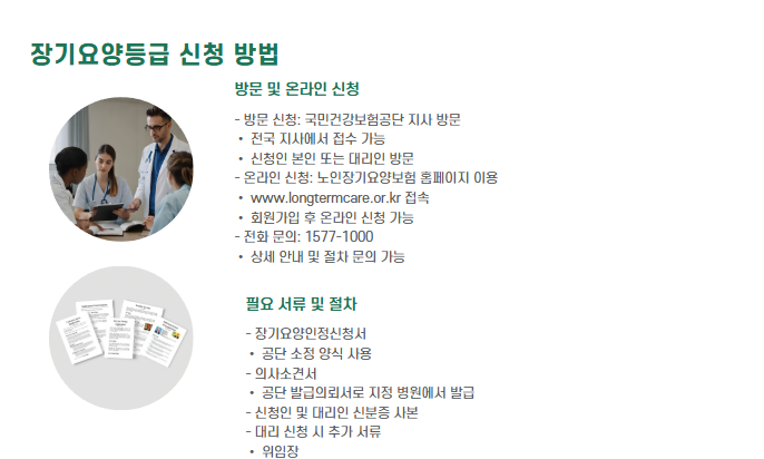- 온라인 신청: 노인장기요양보험 홈페이지