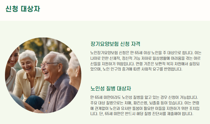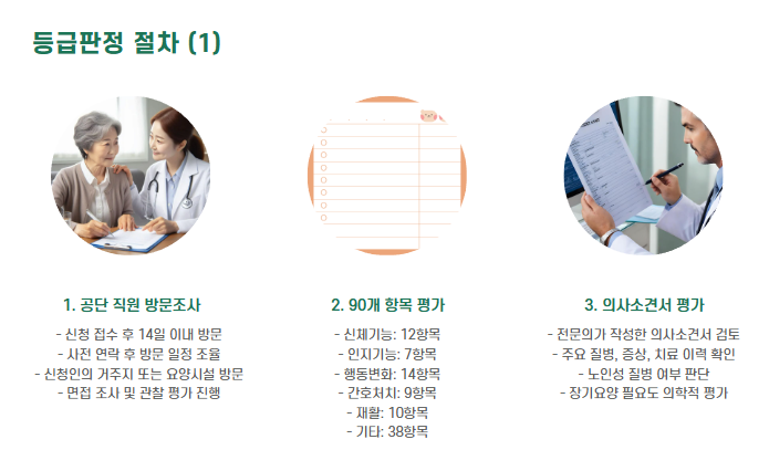 - 서비스 이용: 재가급여 또는 시설급여 신청 가능