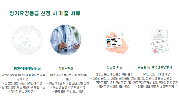 - 의사로부터 해당 질환에 대한 진단서를 받고, 이를 근거로 장기요양등급 신청 가능