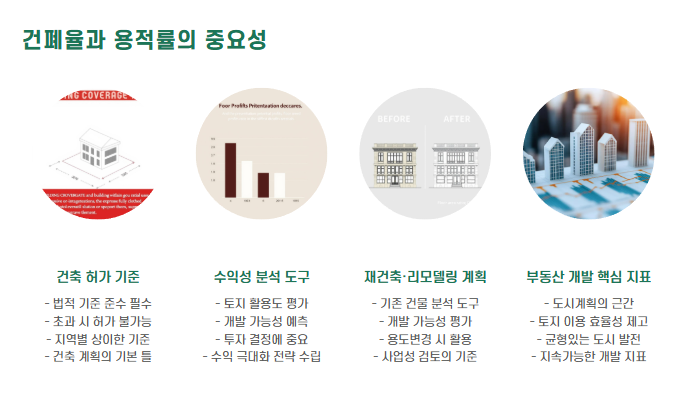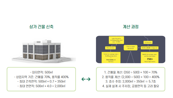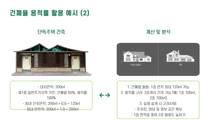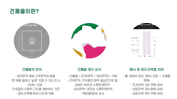 - 건축 허가 기준: 건폐율/용적률을 초과하면 허가가 나지 않습니다.
