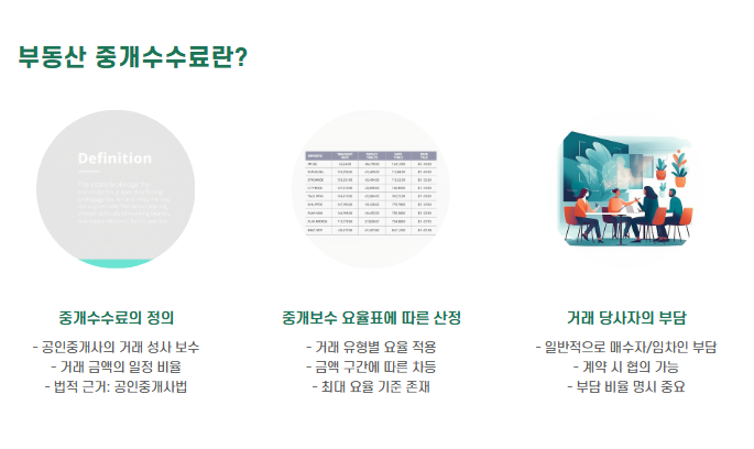 부동산 중개수수료는 공인중개사가 거래를 성사시켰을 때 받는 보수입니다.