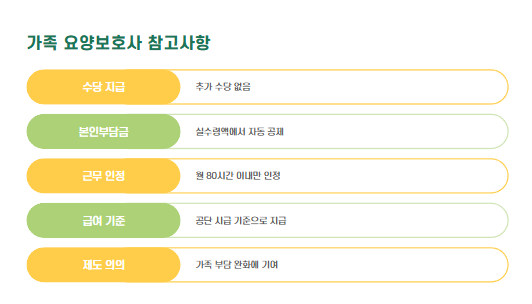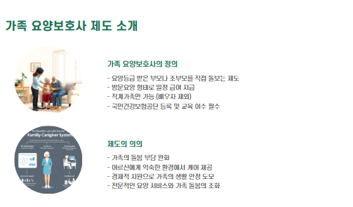 - 가족요양은 돌봄의 연속성과 가족의 부담 완화 측면에서도 매우 의미 있는 제도